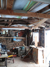 Over thirty years later, Mr Menchenton is no longer with us. But his daughter and her husband drove us out to that same shed, and there, untouched, was the scene as the reporter had described it. All his tools were still in place, and pieces cut out, ready to make a new basket. Strips of wood were fixed into a form to provide the curve needed for basket ends and handles. The table saw he built was still sitting inside the door, and the walls were festooned with tools, jigs, pieces of wood, and the snowshoes he had also apparently been adept at creating. One expected Mr. Menchenton himself to walk in, and pick up his work where he had left off.